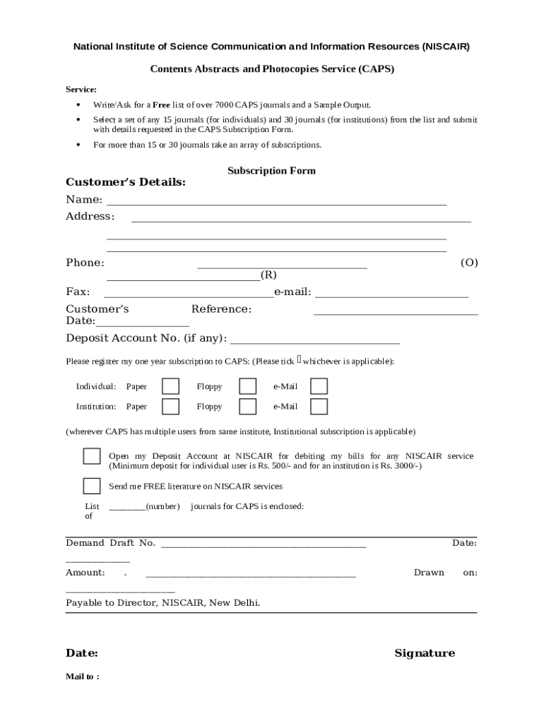 - Find the Solved Contents Abstract and Photocopy Service (CAPS) ... form in PDFfiller’s filebase.