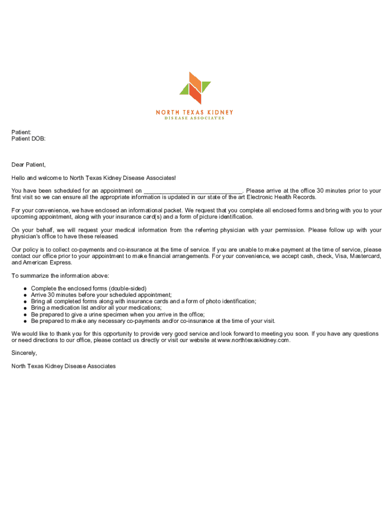 You have been scheduled for an appointment on ___. Please arrive at the office 30 minutes prior to your