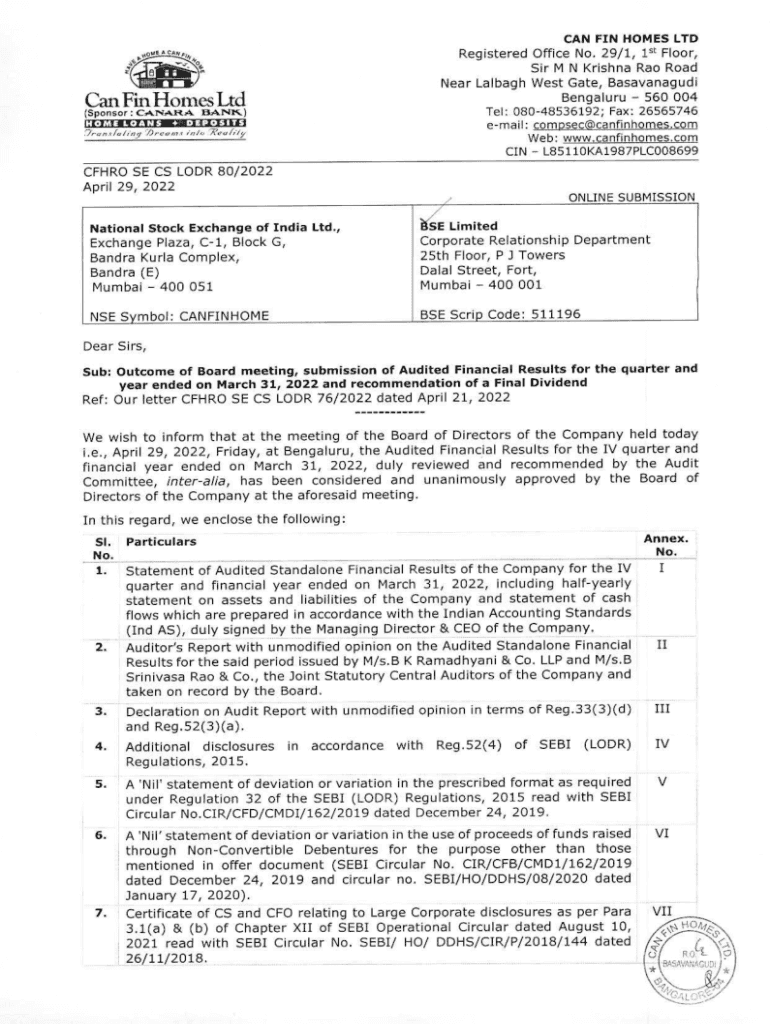 Individuals and entities seeking housing finance or loans from Can Fin Homes are required to file an application with the company.
