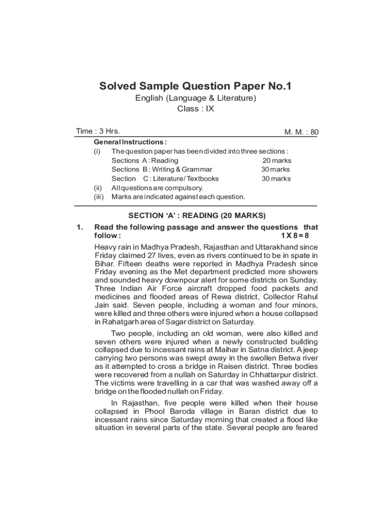 Get the free CBSE Sample Papers for Class 9 All Subjects in PDF