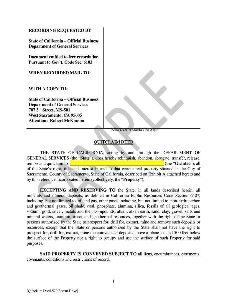 RECORDING REQUESTED BY State of California Official Business Department of General Services Document entitled to free decoration Pursuant to Gov t. Code Sec. 6103 WHEN RECORDED MAIL TO: WITH A COPY