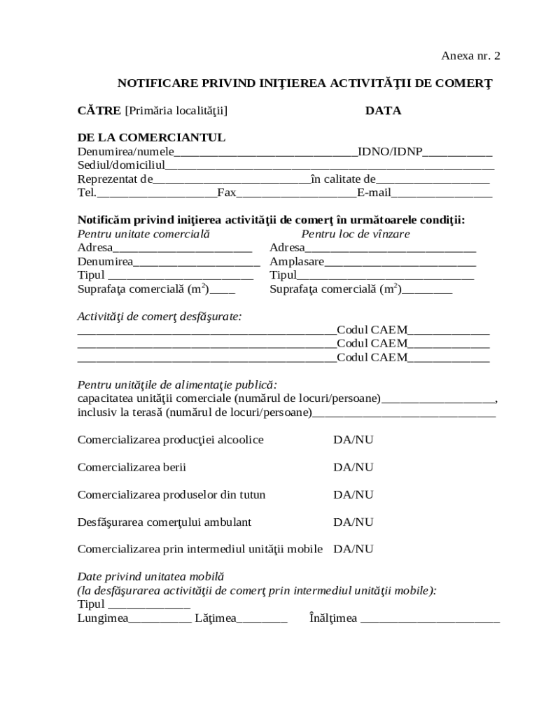 How to fill notificare privind iniierea activitii de comer ctre word template