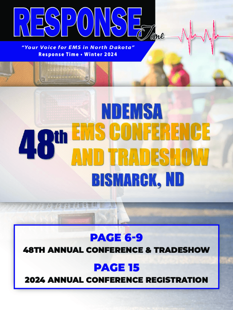 Yo u r Vo i ce f o r E M S i n N o r t h D a ko t aR e s p o n s e Ti m e Wi n t e r 2 0 2 4PAGE 6948TH ANNUAL CONFERENCE & TRADESHOWPAGE 152024 ANNUAL CONFERENCE REGISTRATIONSAVE TIME