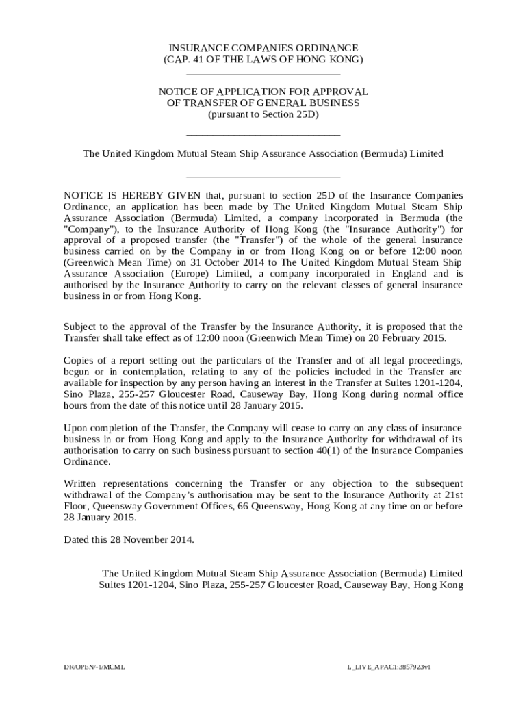 NOTICE OF APPLICATION FOR APPROVAL OF ... template instructions