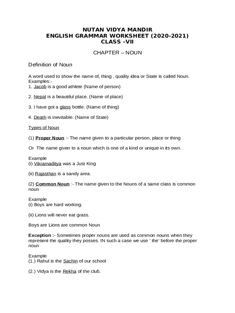 Instructions for the form 1 Chapter I: Nouns in the English System