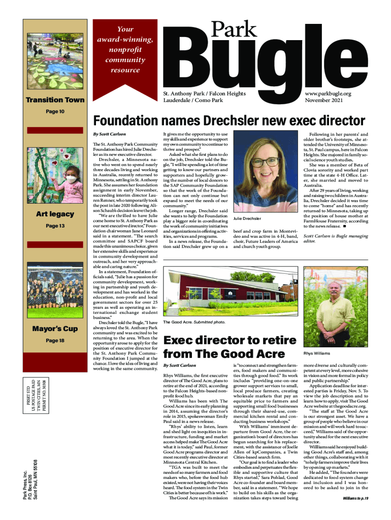 Your awardwinning, nonprofit community resourceSt. Anthony Park / Falcon Heights Lauderdale / Como ParkTransition Town Page 10Page 13Mayors CupPark Press, Inc. P.O. Box 8126 Saint Paul, MN 55108PRSRT