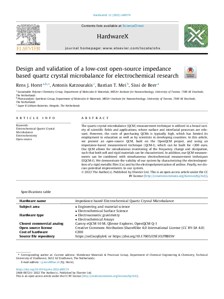 HardwareX 12 (2022) e00374Contents lists available at ScienceDirectHardwareX journal homepage: www.elsevier.com/locate/ohxDesign and validation of a lowcost opensource impedance based quartz crystal