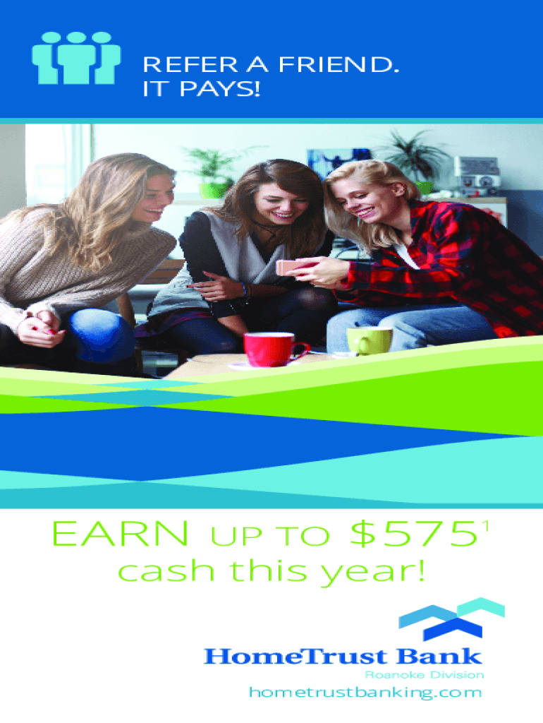 REFER A FRIEND. IT PAYS!EARN UP TO $5751 cash this year!hometrustbanking.com1. Complete this coupon and give it to a friend. 2. Your friend should sign and present this coupon when opening a personal