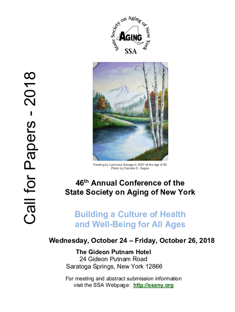 Call for Papers 2018Painting by Lea Irene Savage in 2007 at the age of 80 Photo by Danielle D. Gagne46th Annual Conference of the State Society on Aging of New YorkBuilding a Culture of Health and