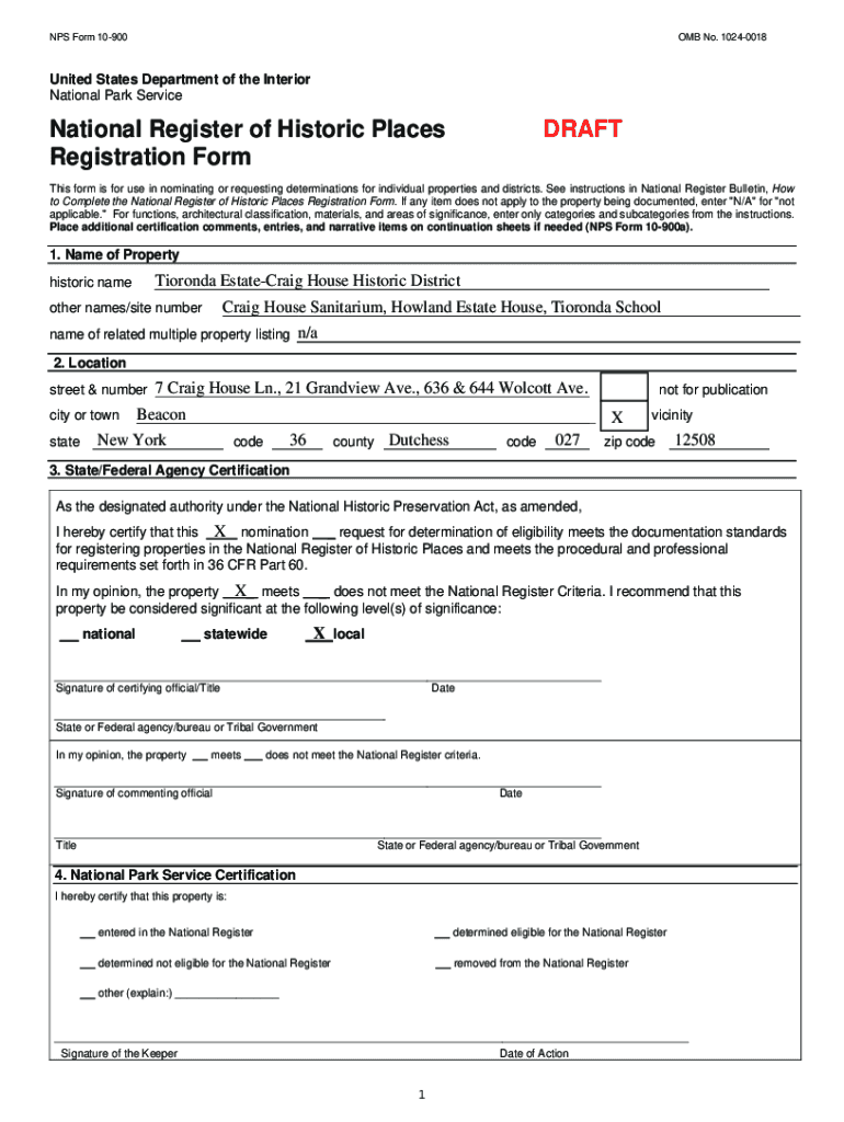 Tioronda Estate-Craig House Historic is not the form you're looking for?Search for another form here.