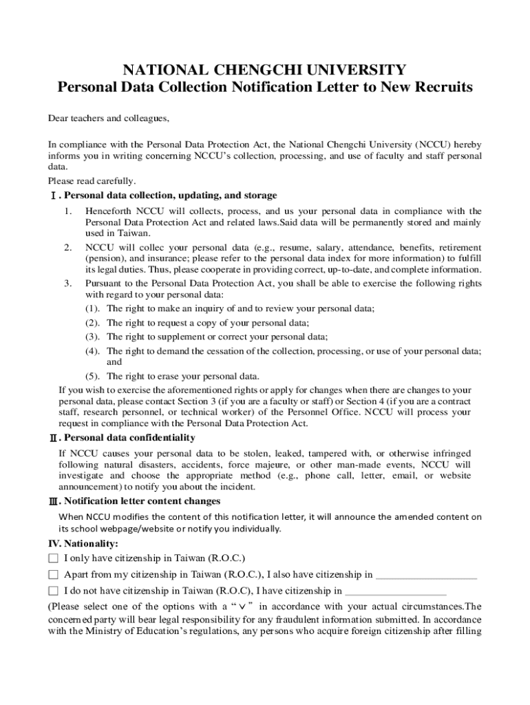 Personal Data Collection Notification Letter to New Recruits
