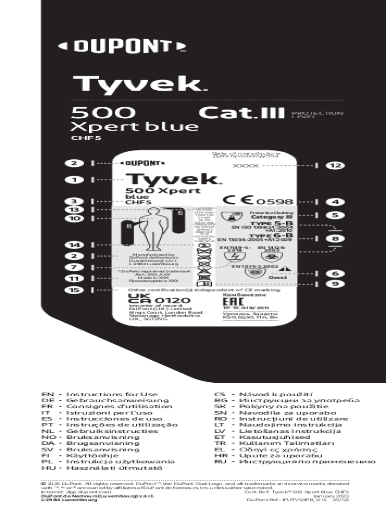 Get the free Tyvek 500 Xpert Blue - Instruction For Use. Tyvek 500 Xpert Blue - Instruction For Use