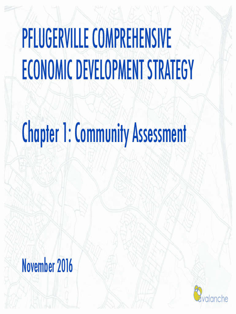 PFLUGERVILLE COMPREHENSIVE ECONOMIC DEVELOPMENT STRATEGY Chapter 1: Community AssessmentNovember 2016 0avalanchePFLUGERVILLE COMPREHENSIVE ECONOMIC DEVELOPMENT STRATEGYTABLE OF CONTENTSABOUT THIS