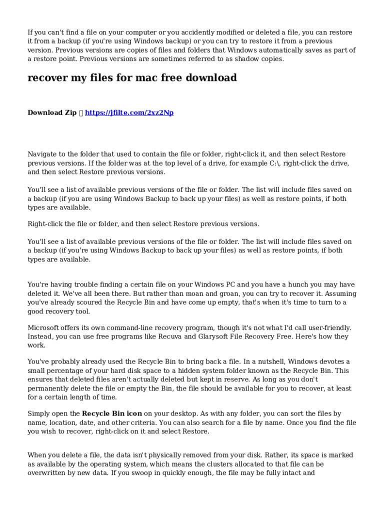 If you can\'t find a file on your computer or you accidently modified or deleted a file, you can restore it from a backup (if you\'re using Windows backup) or you can try to restore it from a previous