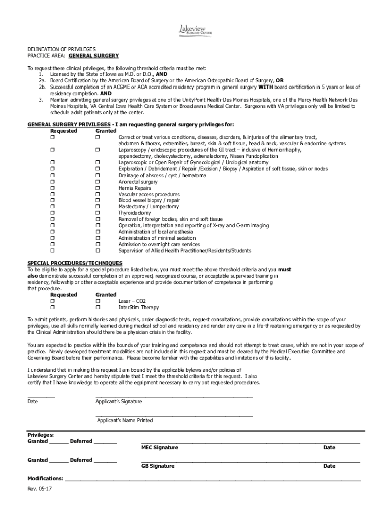 Get the free GENERAL SURGERY To request these clinical privileges, ...