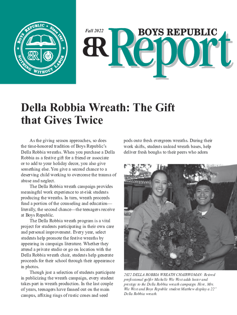 UBLI CSinFall 2022c19YSeREPBO07 ATHBORNO INGWITHOUTLDella Robbia Wreath: The Gift that Gives Twice As the giving season approaches, so does the timehonored tradition of Boys Republics Della Robbia