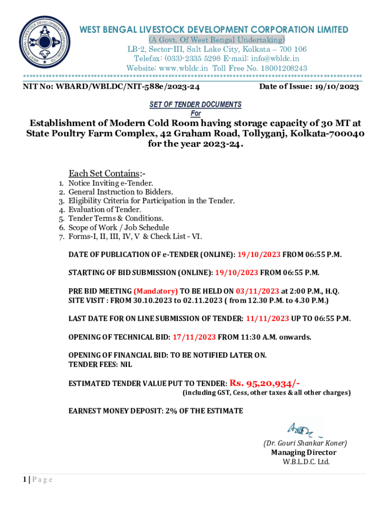 WEST BENGAL LIVESTOCK DEVELOPMENT CORPORATION LIMITED (A Govt. Of West Bengal Undertaking) LB2, SectorIII, Salt Lake City, Kolkata 700 106 Telefax: (033)2335 5298 Email: info@wbldc.in Website: www.wbldc.in