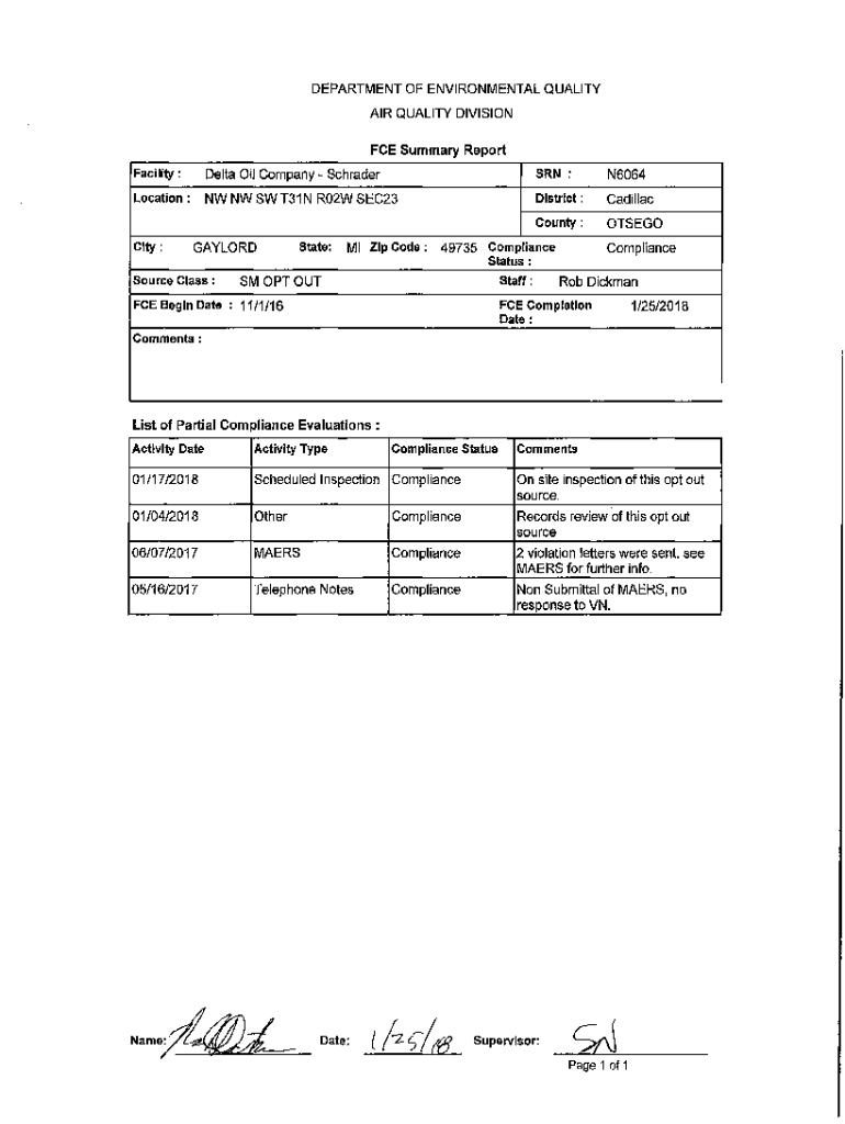 DEPARTMENT OF ENVIRONMENTAL QUALITY AIR QUALITY DIVISIONFCE Summary Report Facility:Delta Oil Company SchraderSRN:N6064Location:NW NW SW T31 N R02W SEC23District:CadillacCounty:OTSEGOCity:GAYLORDState:Ml