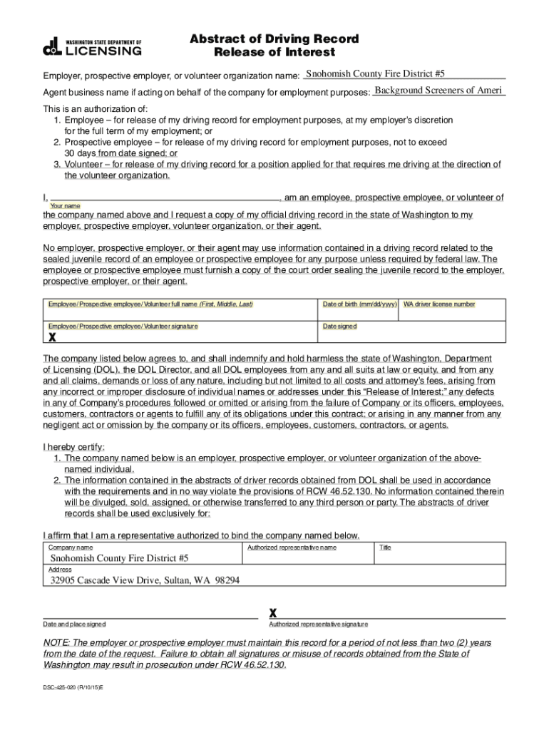EMPLOYMENT APPLICATION Snohomish County Fire District 5 32905 Cascade View Dr. Sultan, WA 98294 Phone: 3607931179 Fax: 3607990563 admin@snofire5.org INSTRUCTIONS: Please answer all questions on this
