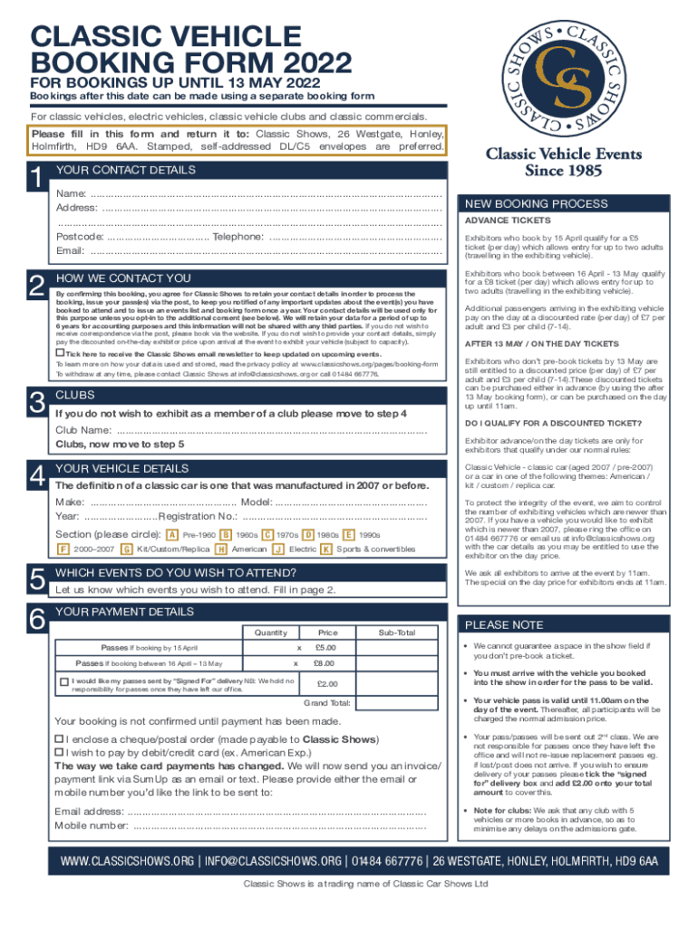 FOR BOOKINGS UP UNTIL 13 MAY 2022Bookings after this date can be made using a separate booking form
