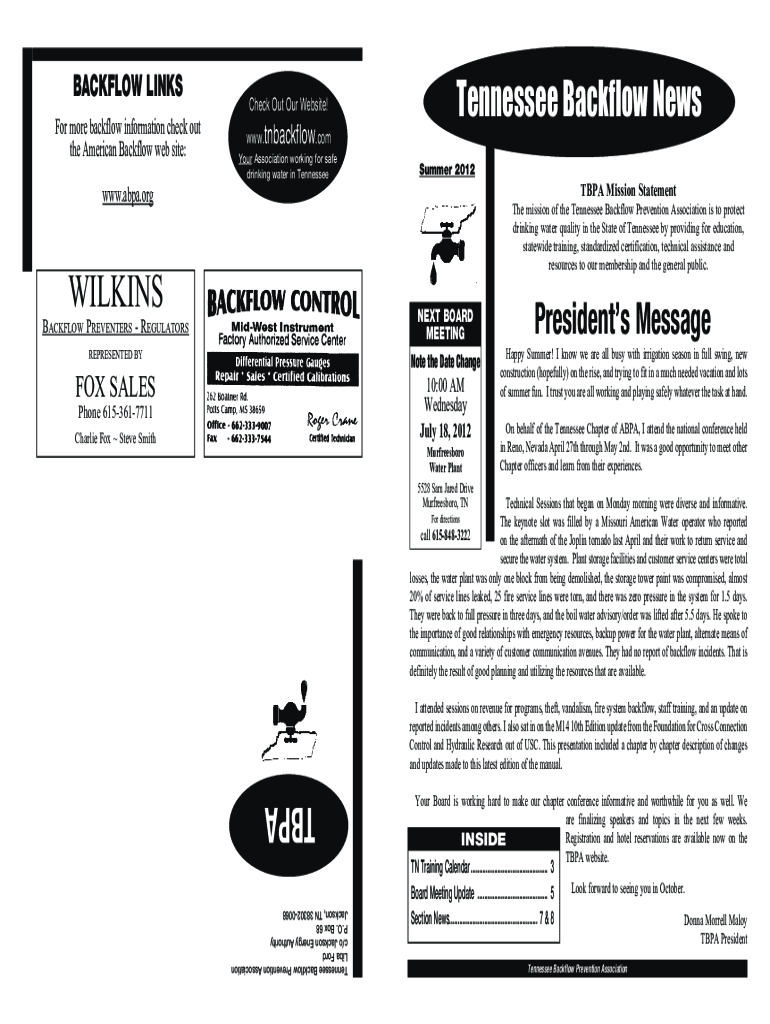 Get the free Backflow Links - Tennessee Backflow Prevention (TBPA)