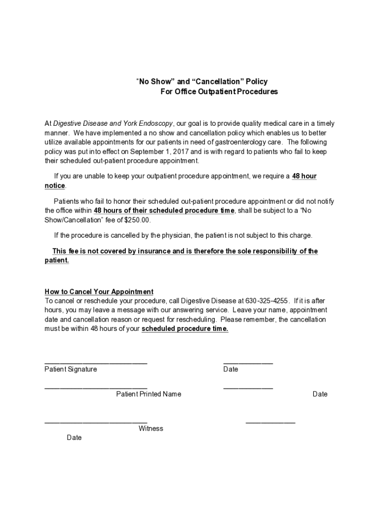 Get the free No Show and Cancellation Policy For Office Outpatient ...