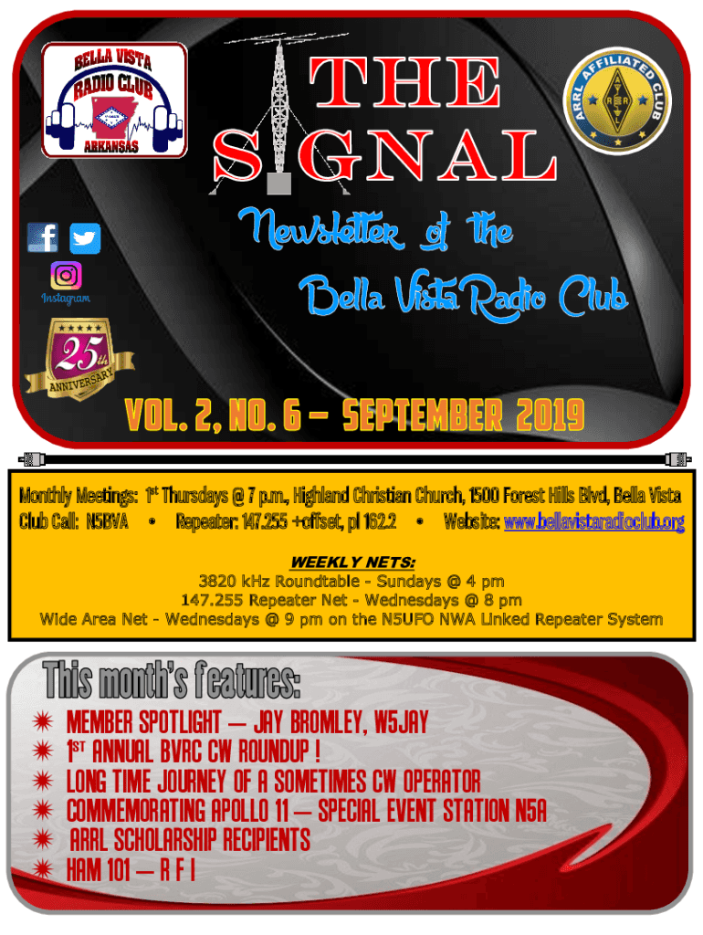 Monthly Meetings: 1st Thursdays @ 7 p.m., Highland Christian Church, 1500 Forest Hills Blvd, Bella Vista Club Call: N5BVA Repeater: 147.255 +offset, pl 162.2 Website: www.bellavistaradioclub.org WEEKLY