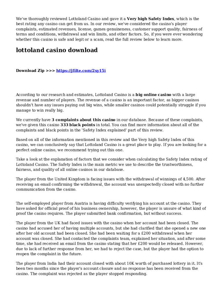 We\'ve thoroughly reviewed Lottoland Casino and gave it a Very high Safety Index, which is the best rating any casino can get from us. In our review, we\'ve considered the casino\'s player complaints,