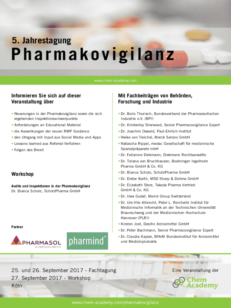5. JahrestagungPharmakovigilanz www.chemacademy.comInformieren Sie sich auf dieser Veranstaltung berMit Fachbeitrgen von Behrden, Forschung und Industrie Neuerungen in der Pharmakovigilanz sowie die