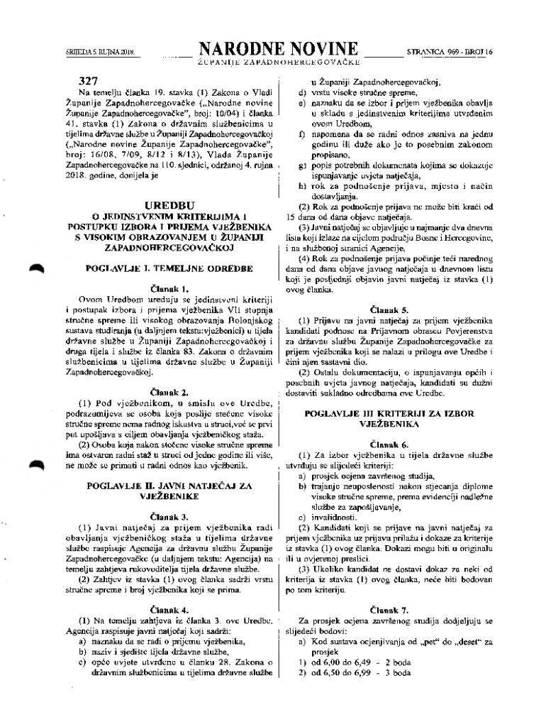 SRIJEDA 5. RUJNA 2018.___NARODNE NOVINE___STRANICA 969 BROJ 16UPANIJE ZAPADNOHERCEGOVAKE327 Na temelju lanka 19. stavka (1) Zakona o Vladi upanije Zapadnohercegovake (Narodne novine upanije Zapadnohercegovake,