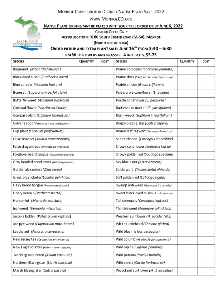 MONROE CONSERVATION DISTRICT NATIVE PLANT SALE 2022