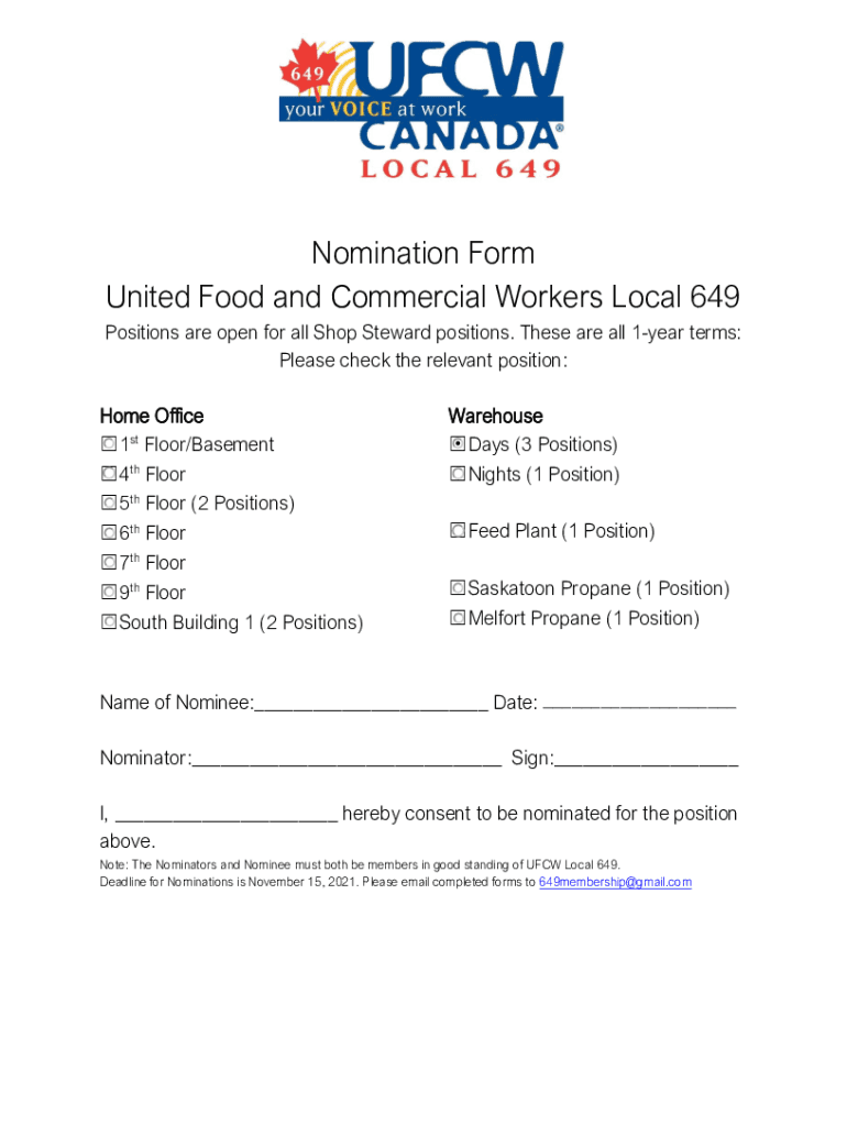 Get the free Nomination Form United Food and Commercial Workers Local 649