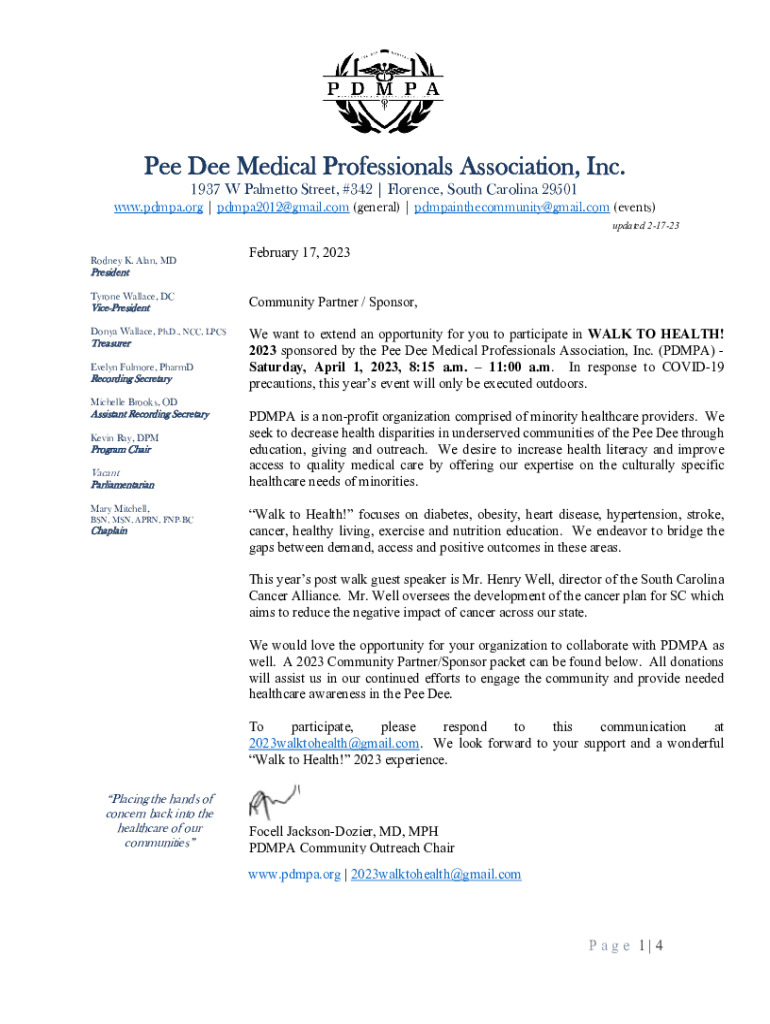 Get the free PDMPA - WTH - COMMUNITY PARTNER AND SPONSOR Packet - 2023-REV