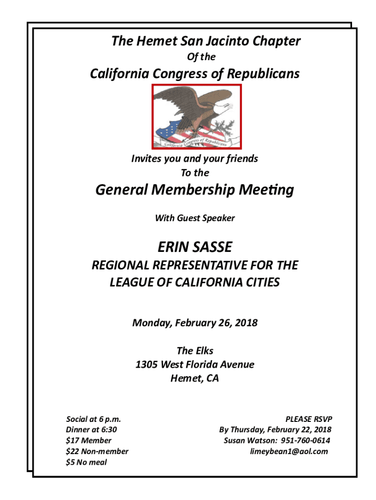 Get the free The Hemet San Jacinto Chapter - California Congress of ...