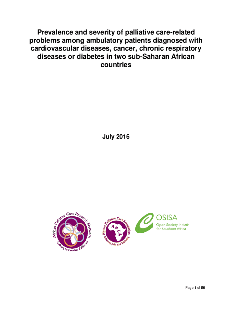 Prevalence and severity of palliative carerelated problems among ambulatory patients diagnosed with cardiovascular diseases, cancer, chronic respiratory diseases or diabetes in two subSaharan African