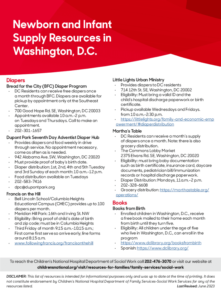 Get the free Newborn and Infant Supply Resources in Washington, D.C.