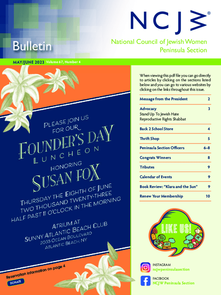 Get the free BulletinNational Council of Jewish Women ...