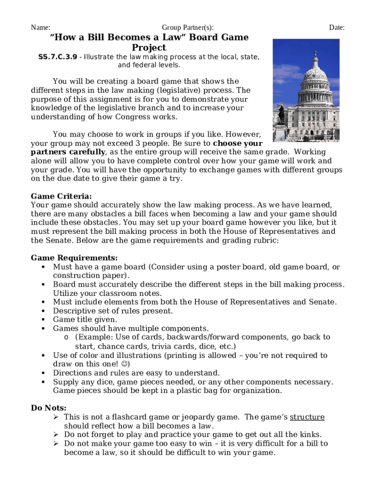 Instructions for the form bill-to-law-board-game-project 1 .doc - Name: Group...