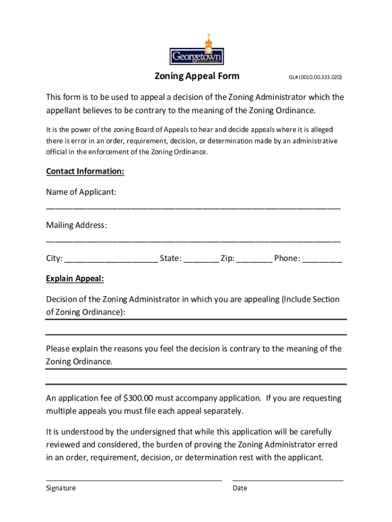 Get the free Zoning Appeal Form