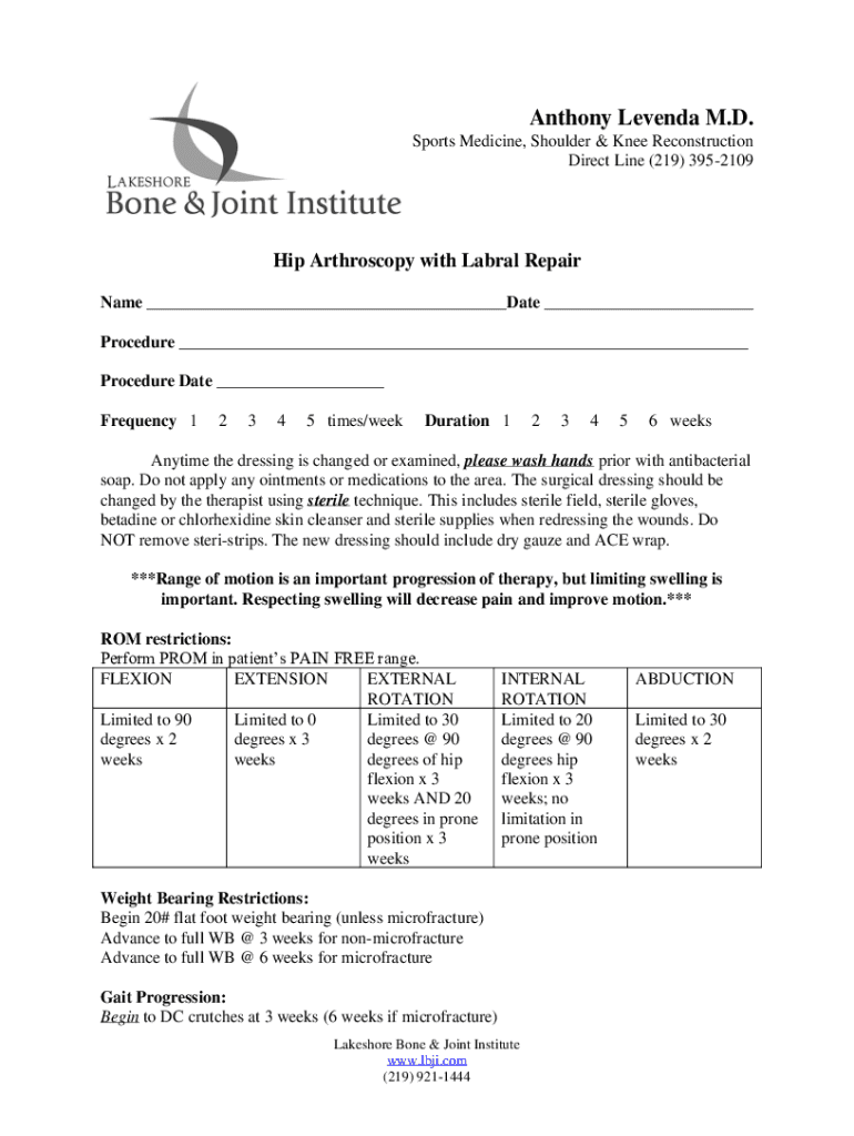 Direct Line (219) 3952109Hip Arthroscopy with Labral Repair
