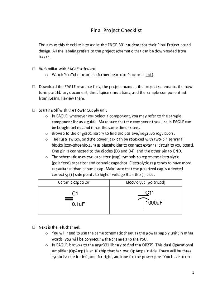 Final Project Checklist The aim of this checklist is to assist the ENGR 301 students for their Final Project board design. All the labeling refers to the project schematic that can be downloaded from