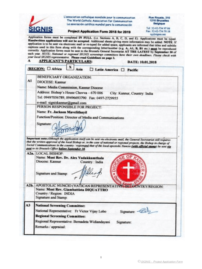 1SIGNIS Project Application FormLassociation catholique mondiale pour la communication The World Catholic Association for Communication La asociacin catlica mundial para la comunicacinRue Royale,