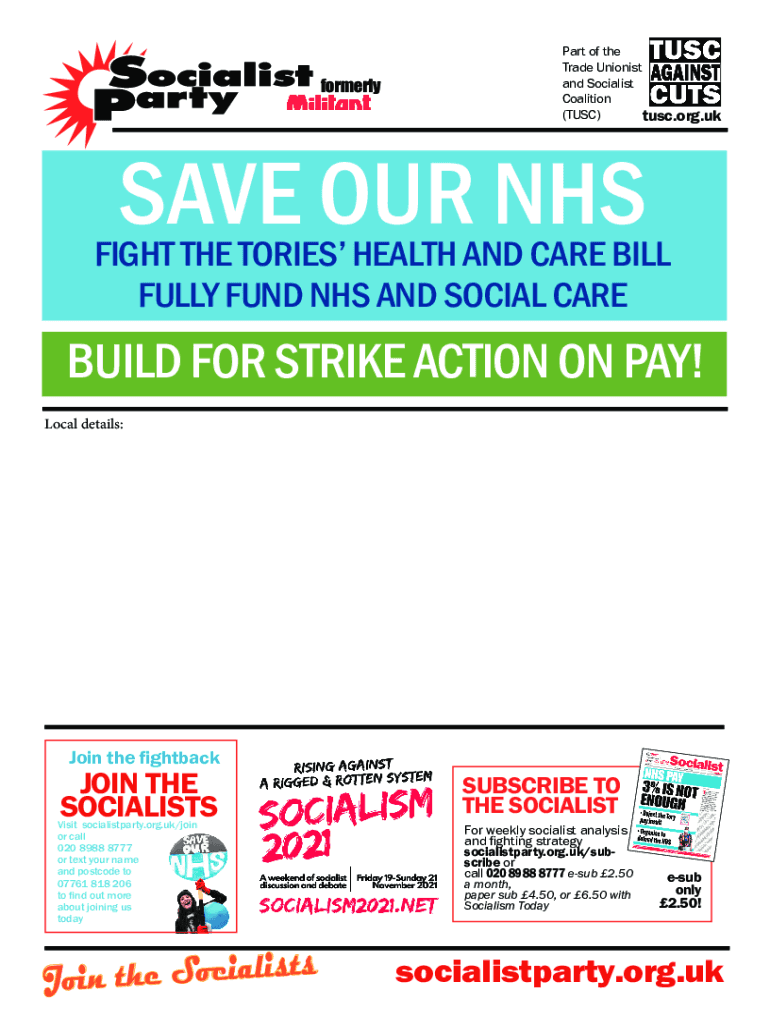 tusc.org.ukSAVE OUR NHSFIGHT THE TORIES HEALTH AND CARE BILL