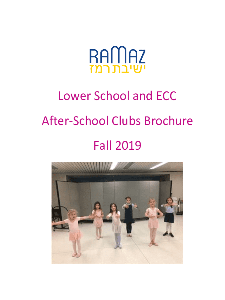 Lower School and ECC AfterSchool Clubs Brochure Fall 2019Dear ECC and LS Parents, We are pleased to be sending out the fall club schedule for outside vendors and Ramaz clubs. Registration for Ramaz