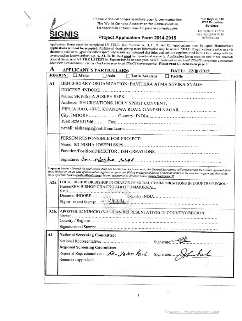1SIGNIS Project Application FormLassociation catholique mondiale pour la communication The World Catholic Association for Communication La asociacin catlica mundial para la comunicacinRue Royale,