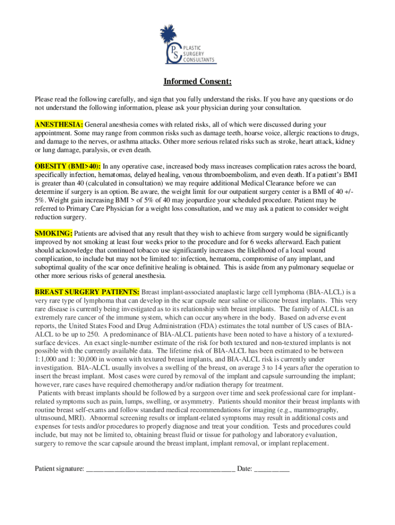 Informed Consent: Please read the following carefully, and sign that you fully understand the risks. If you have any questions or do not understand the following information, please ask your physician