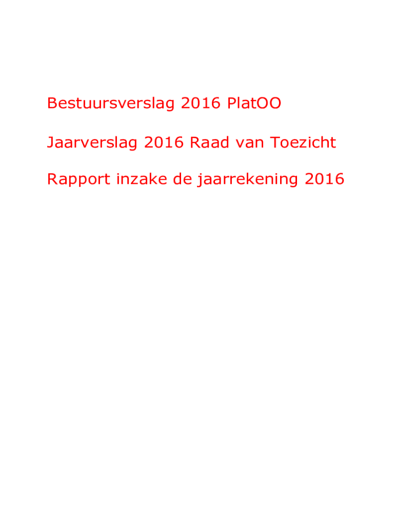 Bestuursverslag 2016 PlatOO Jaarverslag 2016 Raad van Toezicht Rapport inzake de jaarrekening 2016PlatOO Openbaar en algemeen toegankelijk onderwijs Bestuursverslag 2016 Stichting PlatOOStichting