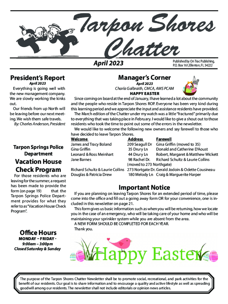 April 2023Published by On Trac Publishing, P.O. Box 161,Ellenton, FL 34222Presidents ReportManagers CornerEverything is going well with the new management company. We are slowly working the kinks