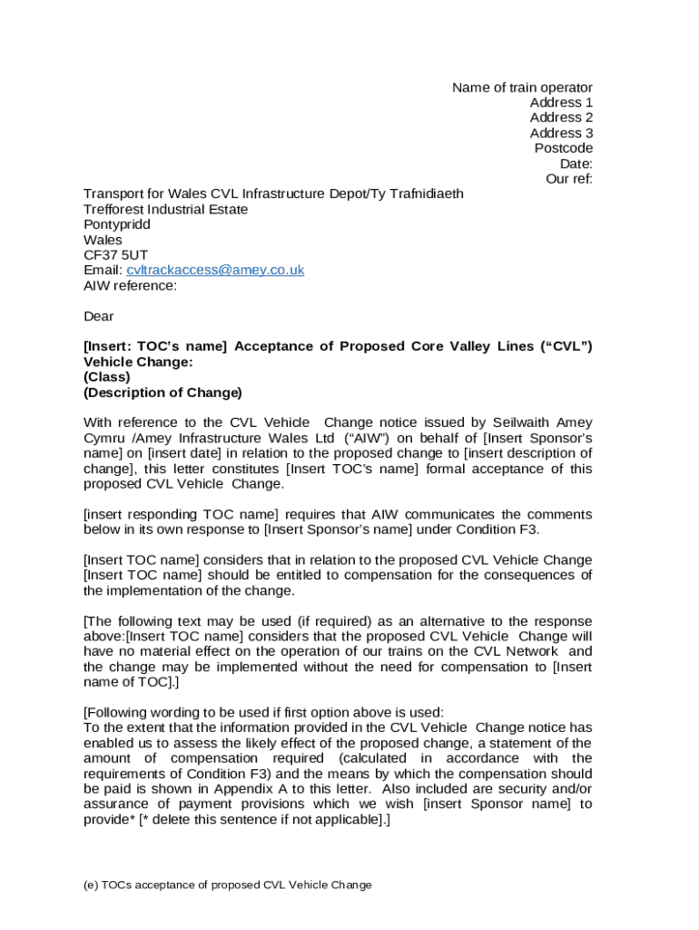 - Get the Standard (e) TOC acceptance of proposed Vehicle Change. Network Rail form in PDFfiller’s filebase.