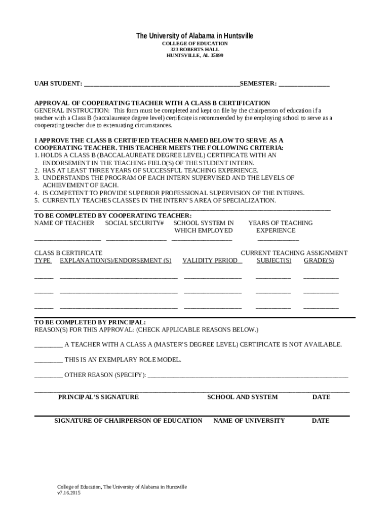 Instructions for the Student Teaching Policies and ProceduresST Handbook form